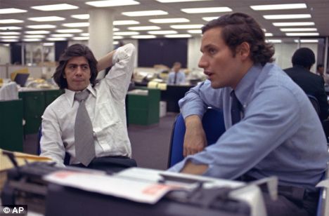 PROTECTING SOURCES is a longstanding tradition in journalism. Had Carl Bernstein and Bob Woodward (above) revealed their primary source during the Watergate scandal, President Richard Nixon may have remained in office and the corruption of that era may have continued.More recently, former New York Times reporter Judith Miller spent three months in jail rather than reveal the source of her information (which she never even published).